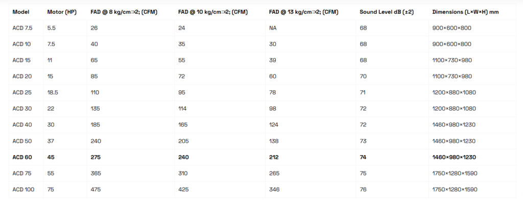 heavy-duty endurance. The ACD 60 is engineered for long production cycles, making it ideal for manufacturing, fabrication, packaging, and industrial processing. Its