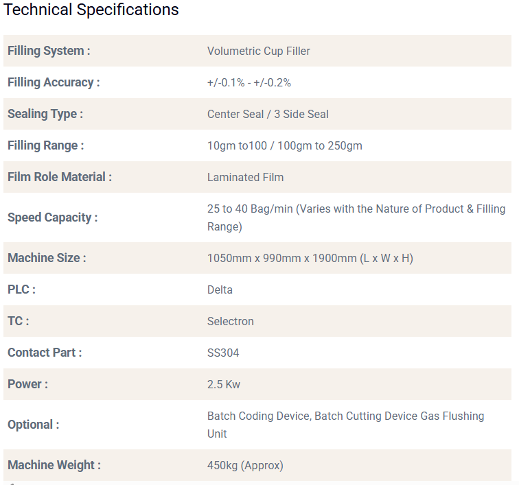 Automatic Form Fill & Seal Machine with Cup Filler for Grains & Free Flow Powder items Like Rawa, Broken Wheat, Detergent, Tea, Coffee, Namkeen, Puffs, Pesticides Etc. in Volumetric Cup Filler