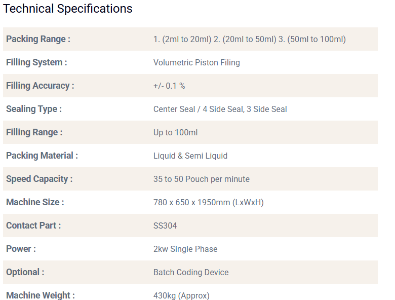 Automatic Form Fill & Seal Machine for Free Flowing Liquid and Semi Liquid to Pack Products Like Shampoo, Honey, Coconut Oil, Tomato Puree, Oil, Grease, Paste and any other Free Flowing Materials in Piston Filler