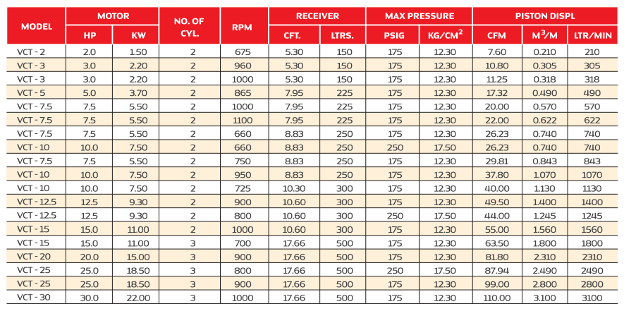 Two Stage Medium Pressure Compressor (7 – 17.5 Kg/cm²)