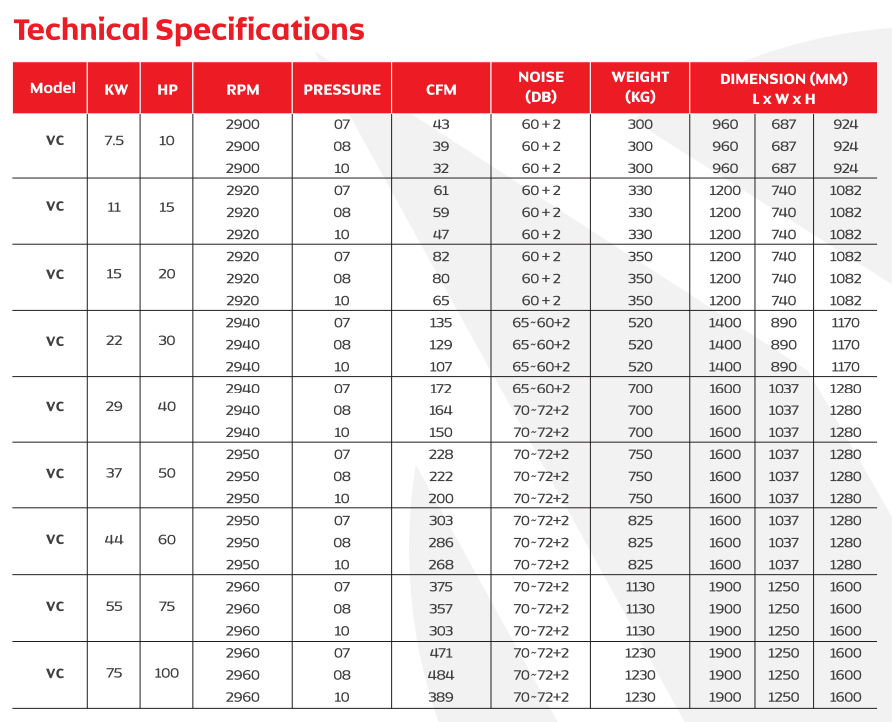 Wide Power Range: Available from 7.5 kW to 132 kW, suitable for small, medium, and large industrial requirements.